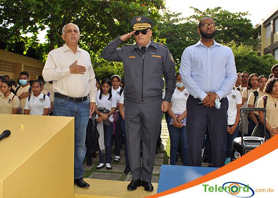 San Francisco De Macorís.- Con una coordinación entre la Unión Deportiva de la Provincia Duarte (UDEPRODU) y la Dirección Regional Noreste de la Policía Nacional fue realizado un izamiento de la bandera nacional en el Politécnico Vicente Aquilino Santos.
