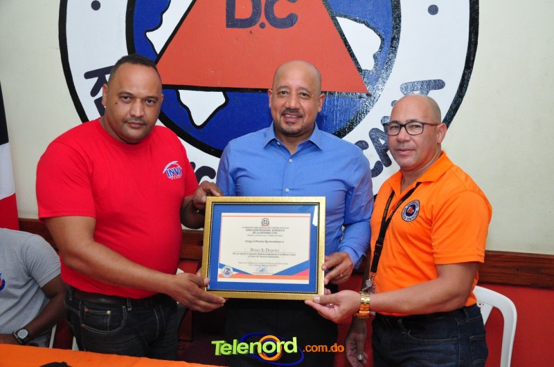 El reconocimiento fue otorgado por el Sr. Juan Inoa, director provincial de la Defensa Civil. De su lado, De Peña prometió continuar aportando a la institución todo los que esté a su alcance como son prendas de vestir, Data show o proyectores y equipos de Rescate.
