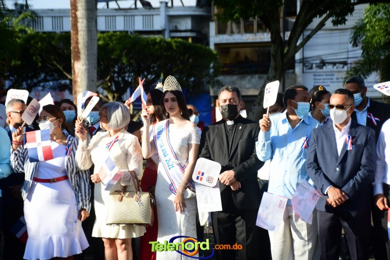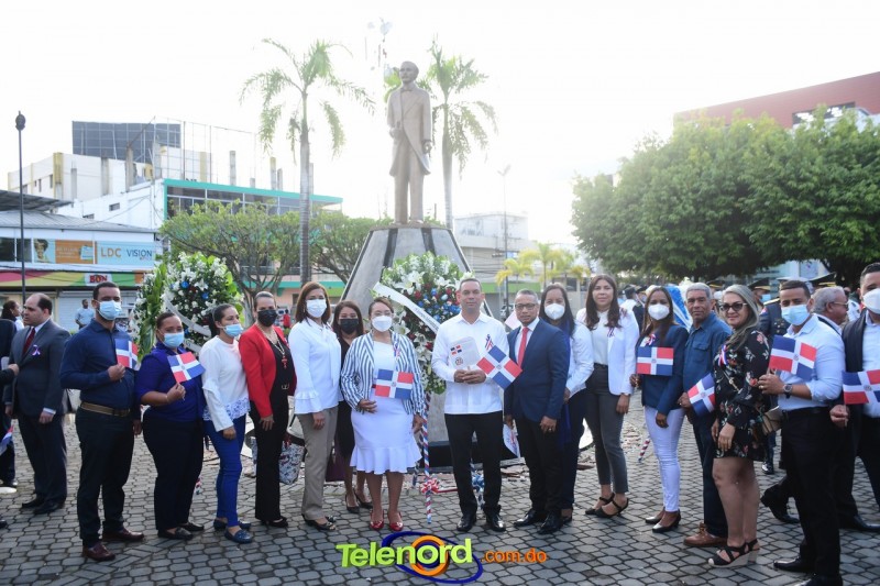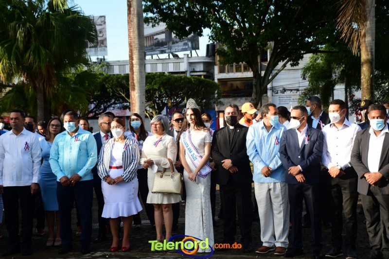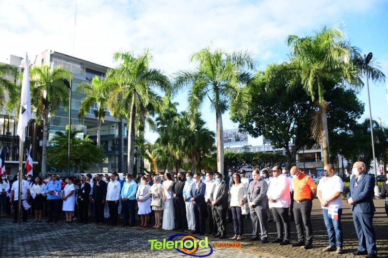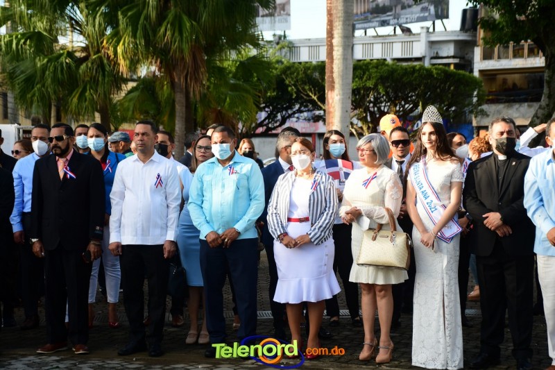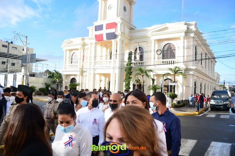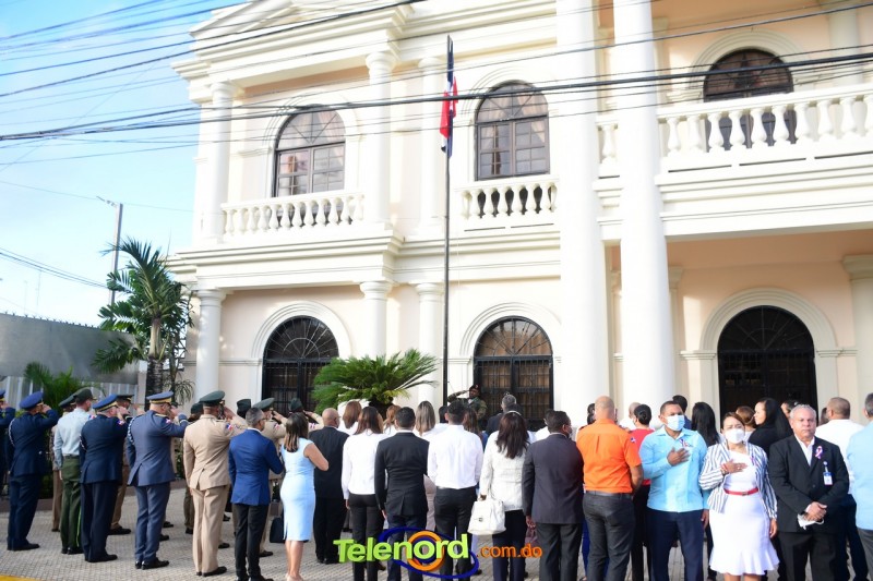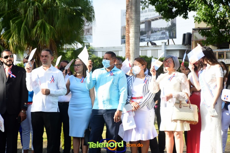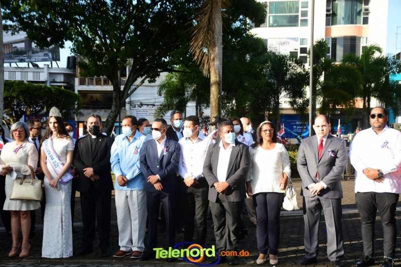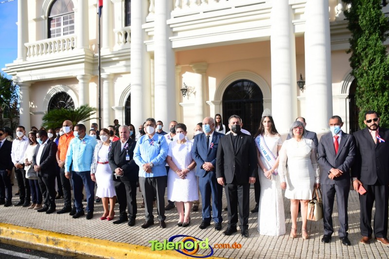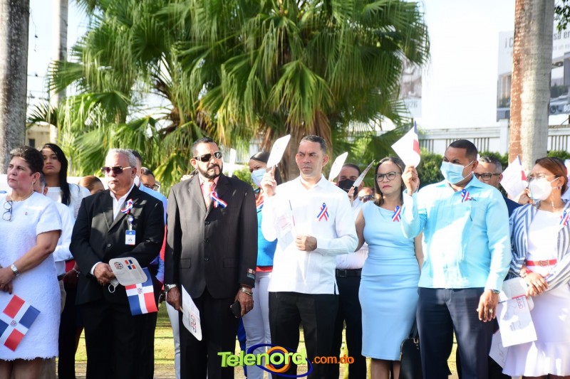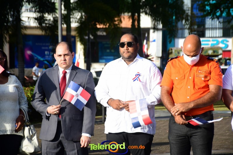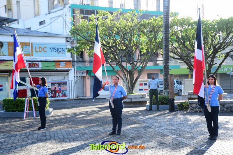 Los actos iniciaron con el enhestamiento de la Bandera Nacional, y la interpretación del Himno Nacional frente al Parque Duarte, encabezada por la vicealcaldesa Tinita Gonzalez, los miembros de la Sala Capitular, y los miembros de las direcciones municipales, provinciales y regionales de las distintas instituciones del estado.