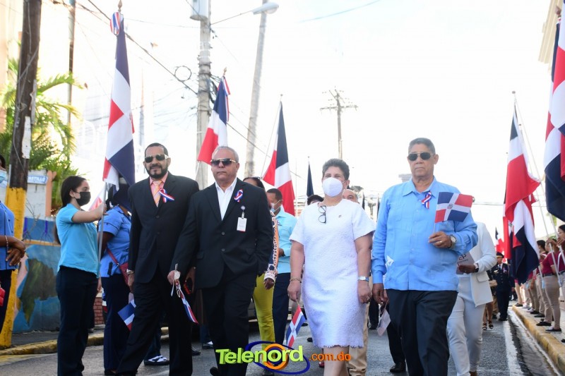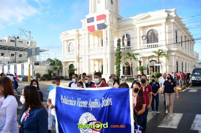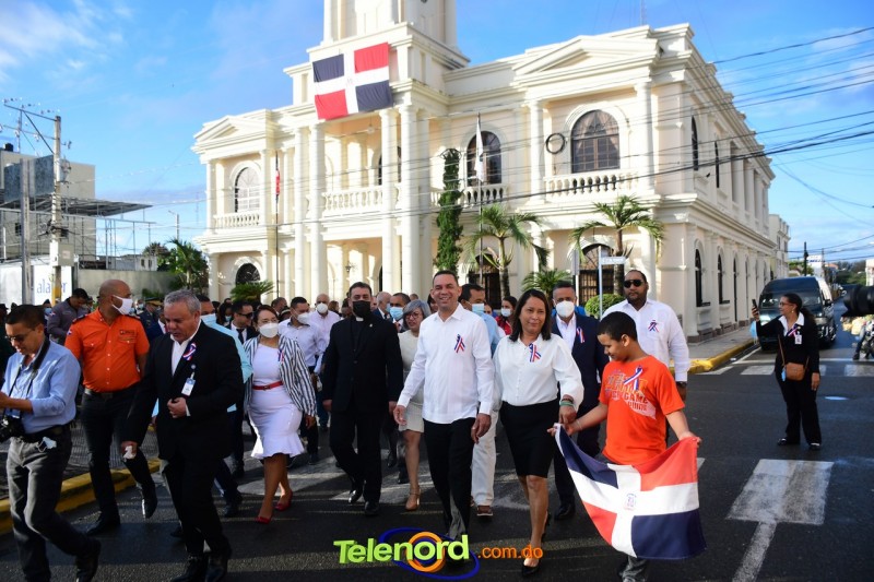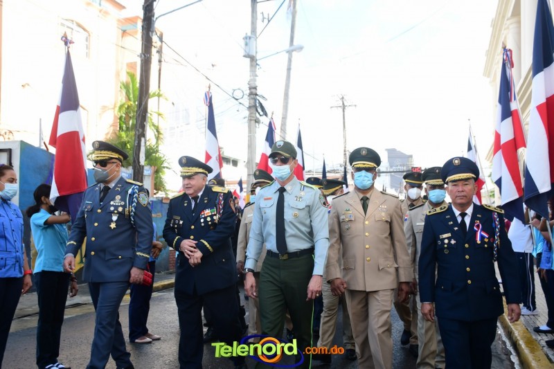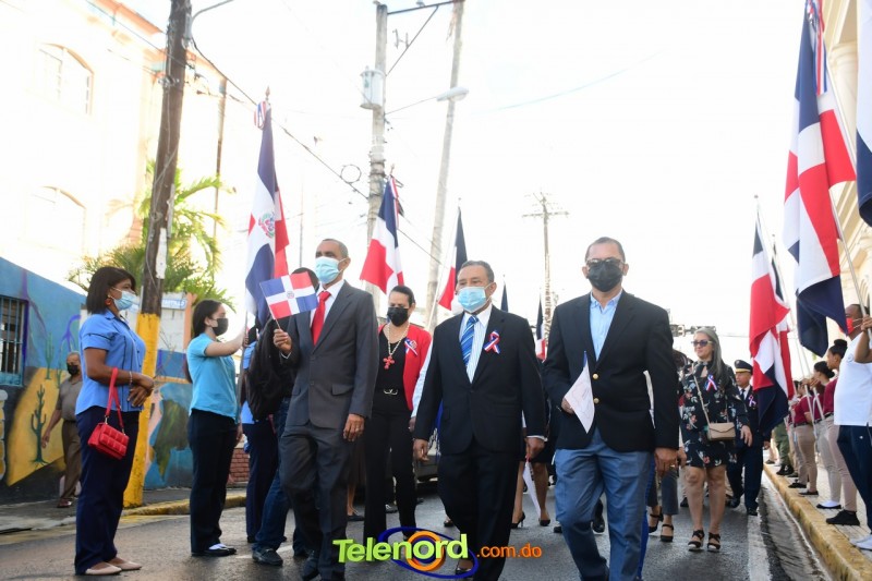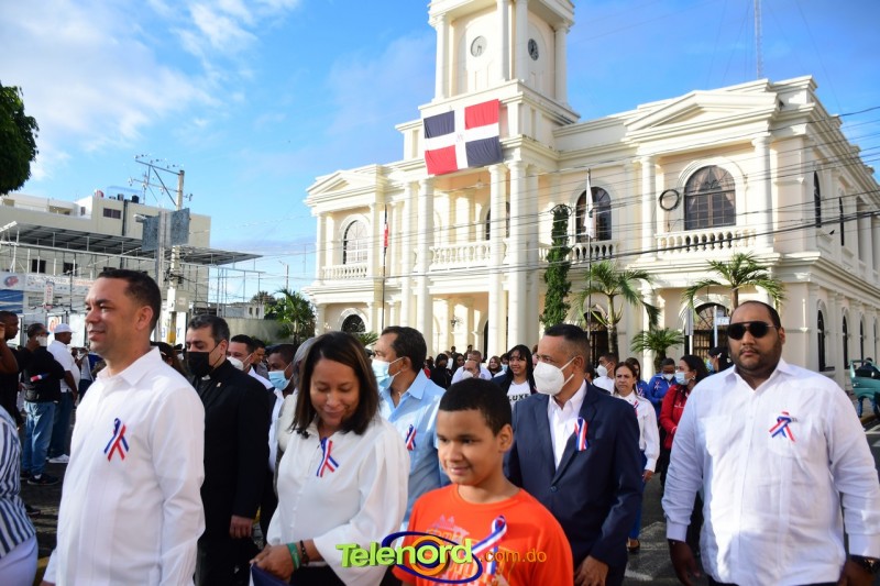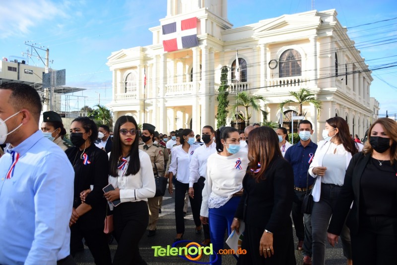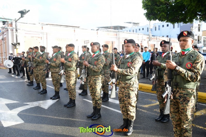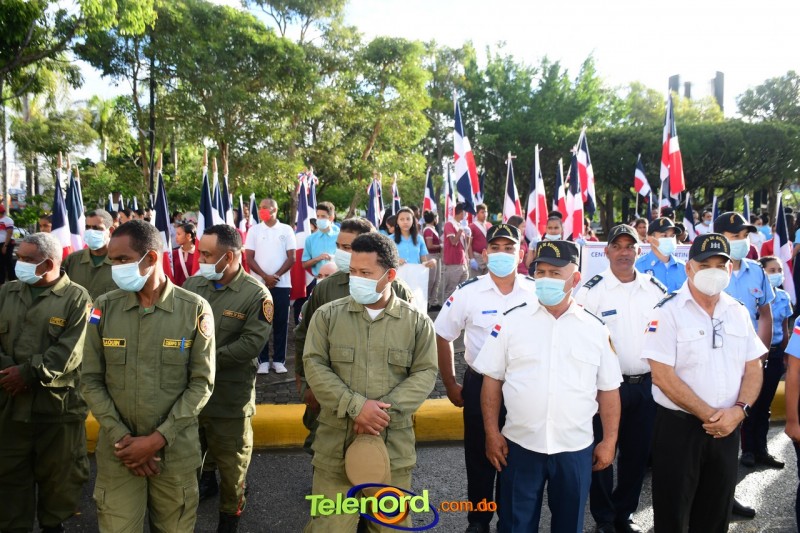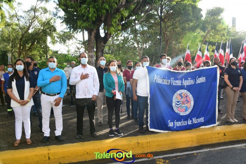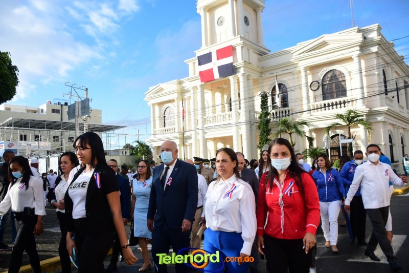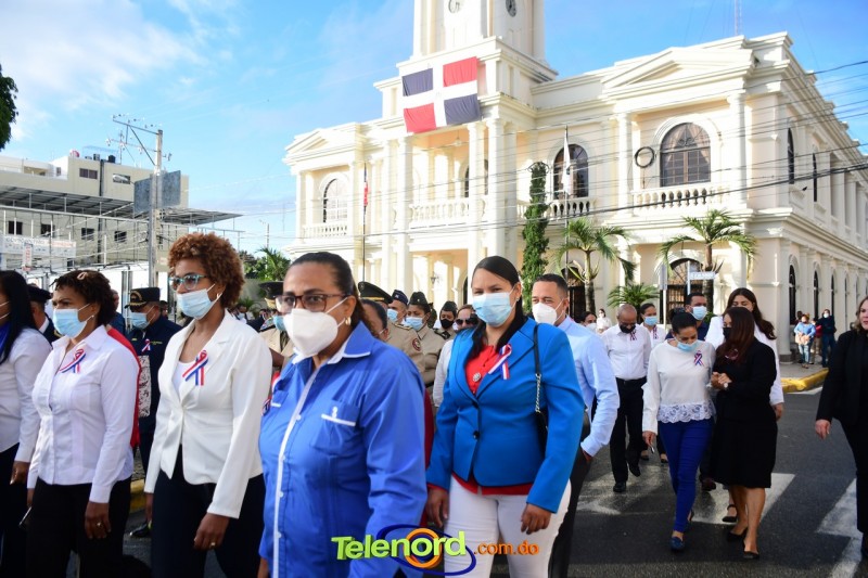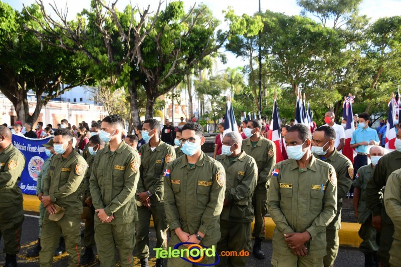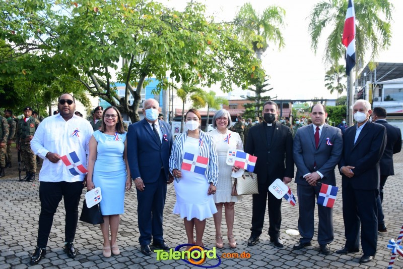 Los actos iniciaron con el enhestamiento de la Bandera Nacional, y la interpretación del Himno Nacional frente al Parque Duarte, encabezada por la vicealcaldesa Tinita Gonzalez, los miembros de la Sala Capitular, y los miembros de las direcciones municipales, provinciales y regionales de las distintas instituciones del estado.