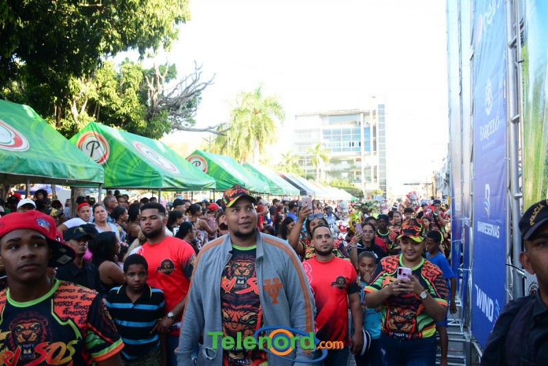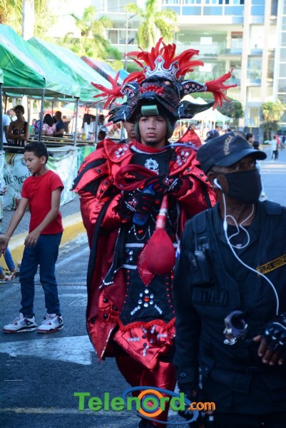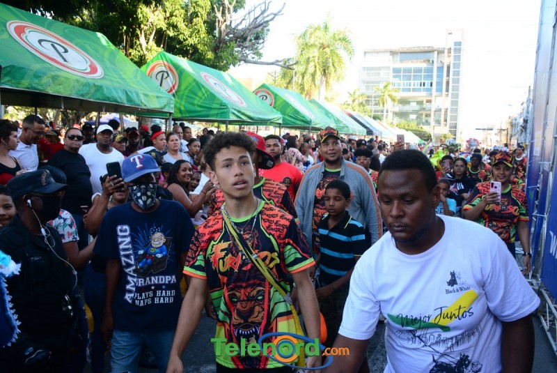Los grupos carnavalescos desfilaron con sus coloridos y vistosos trajes especiales para esta gran clausura, para el disfrute de los cientos de personas que disfrutaron del carnaval en el Parque Duarte.