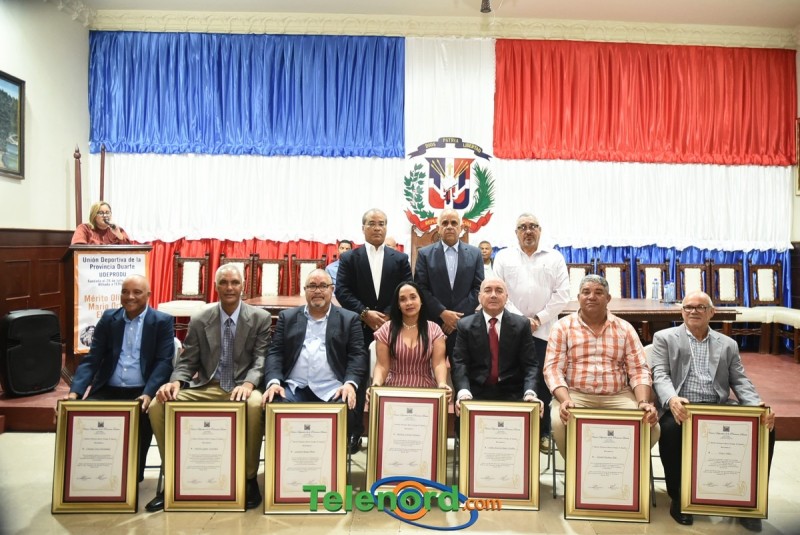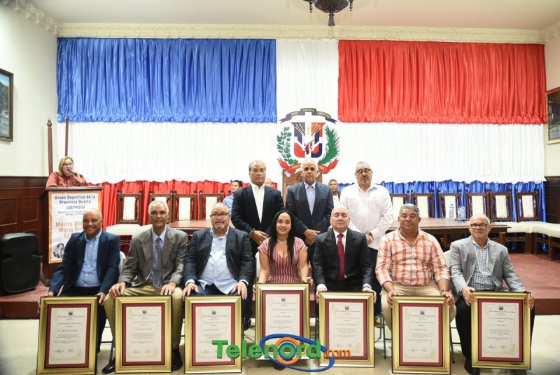 San Francisco de Macoris.- En una imponente ceremonia realizada en el Salón de actos del Ayuntamiento Municipal, la Unión Deportiva de la Provincia Duarte (UDEPRODU), reconoció a 7 pasados atletas y propulsores del deporte duartista que han sido ejemplos de vida en el maravilloso mundo del deporte.