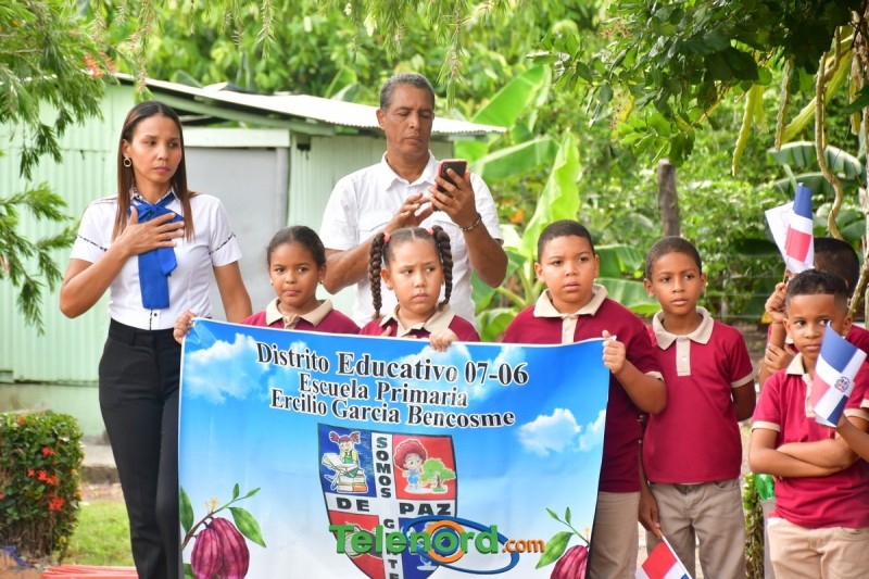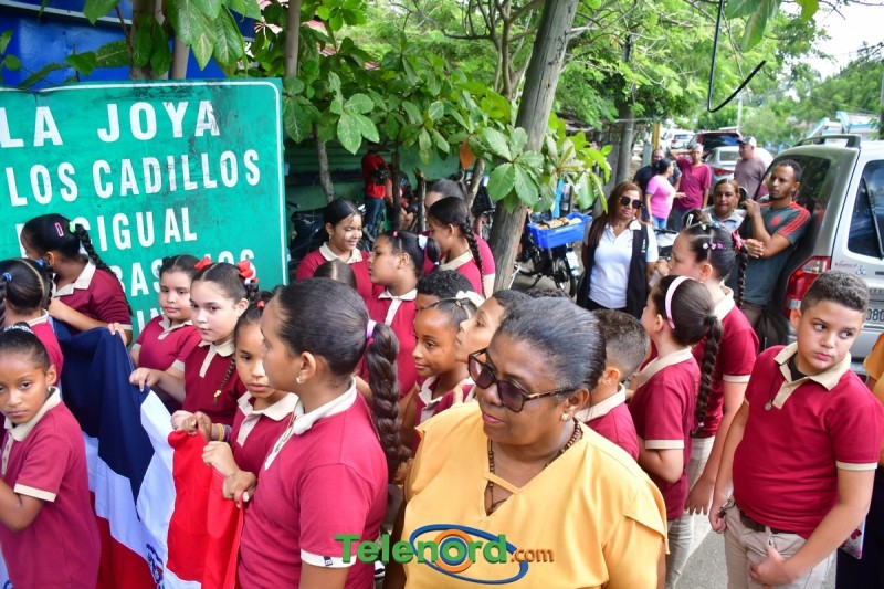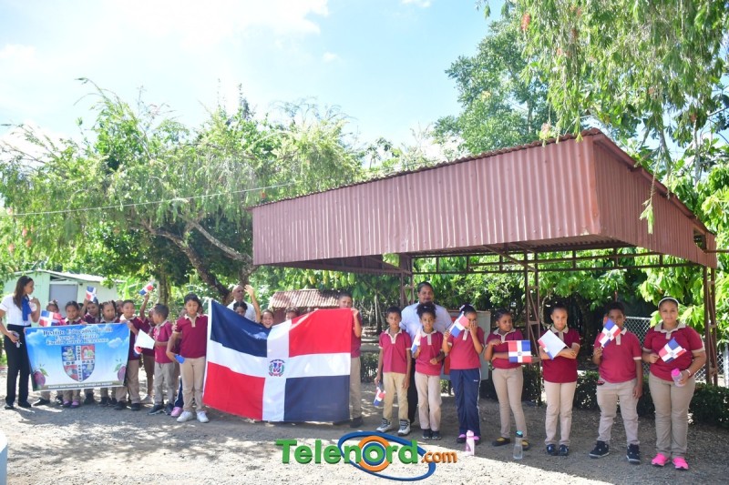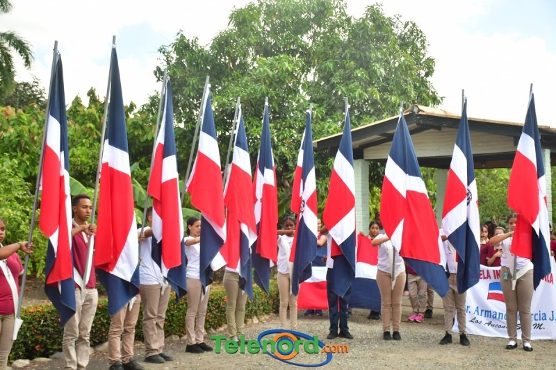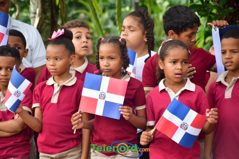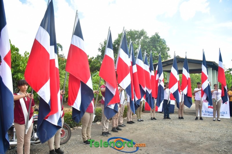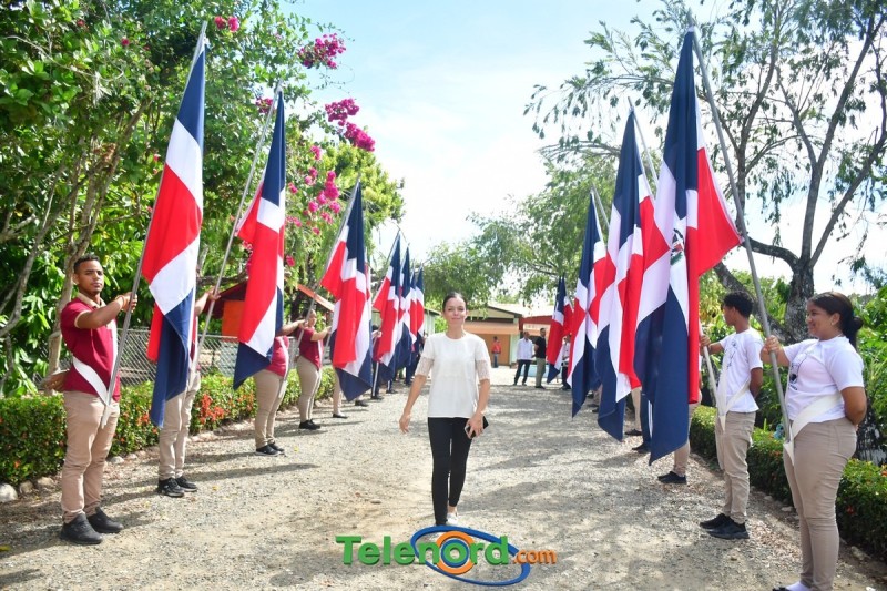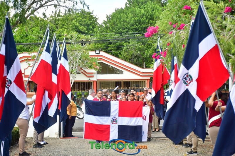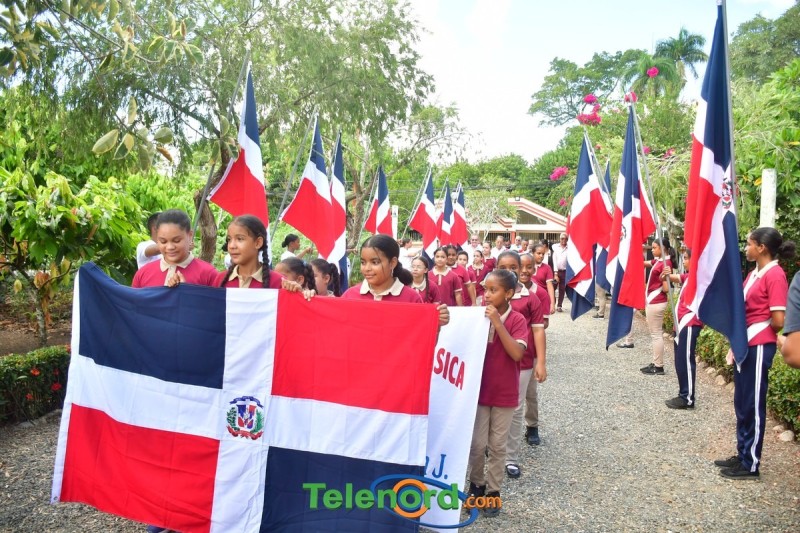 Previo al inicio del acto se realizó un desfile de estudiantes portando la Bandera Dominicana.