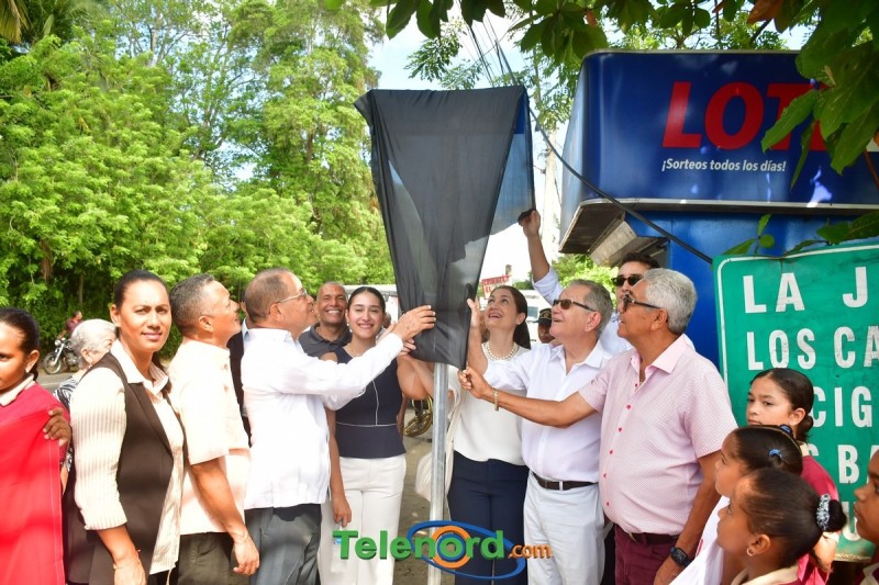 El develizamiento de los rótulos estuvo a cargo del alcalde Ng. de la Rosa, el presidente del Concejo de Municipal Kevin Grullón y los familiares de doña Violeta.