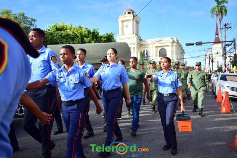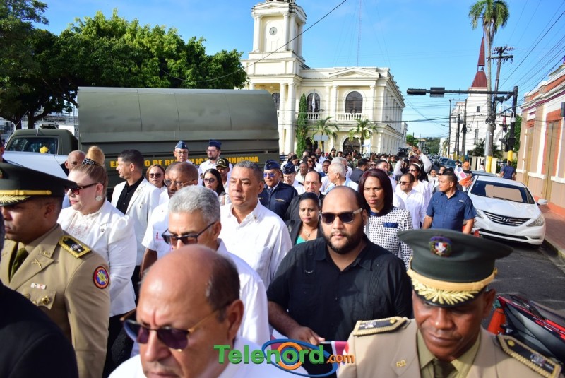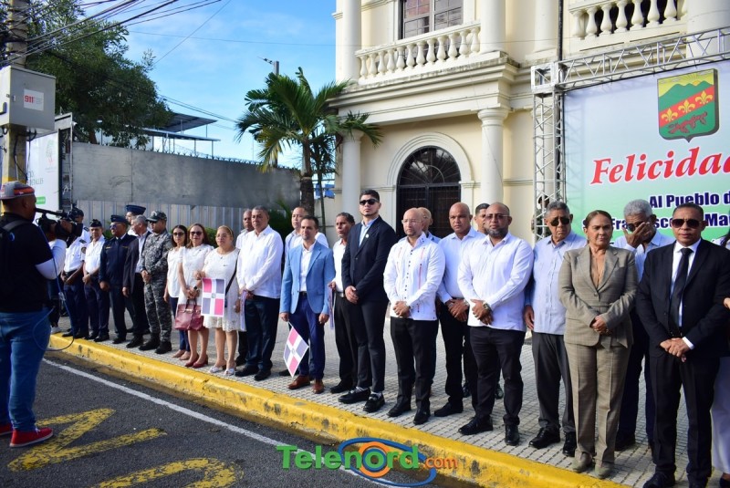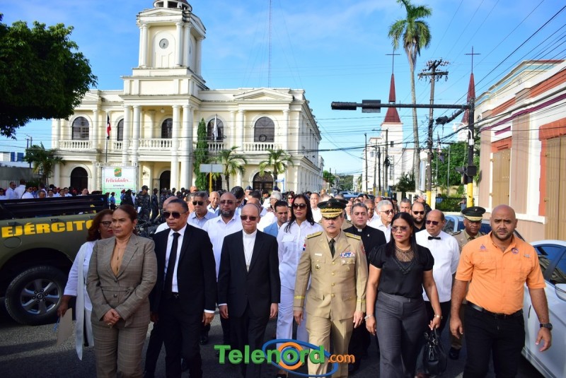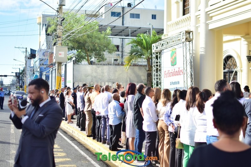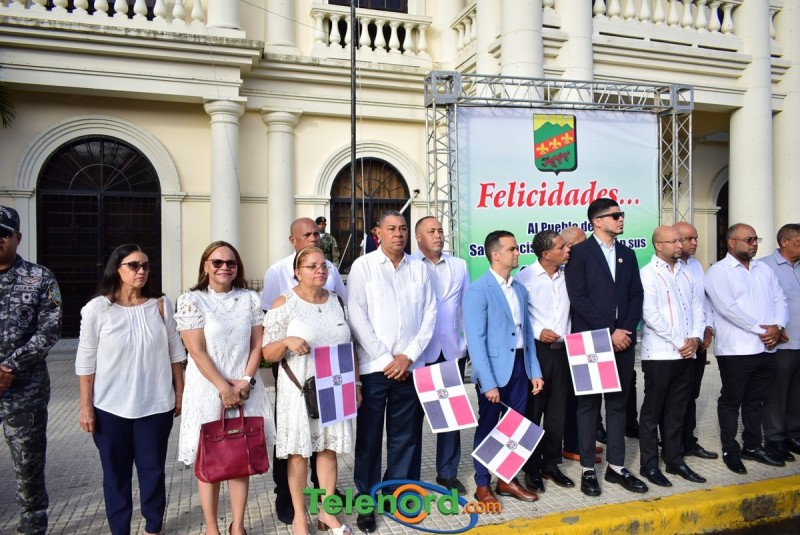 Los actos iniciaron con la interpretación del himno nacional e izamiento de la bandera, frente al Palacio Municipal, con la presencia del alcalde municipal Alex Diaz, la gobernadora civil y provincial de Duarte Xiomara Cortés, y los miembros de la sala capitular.
