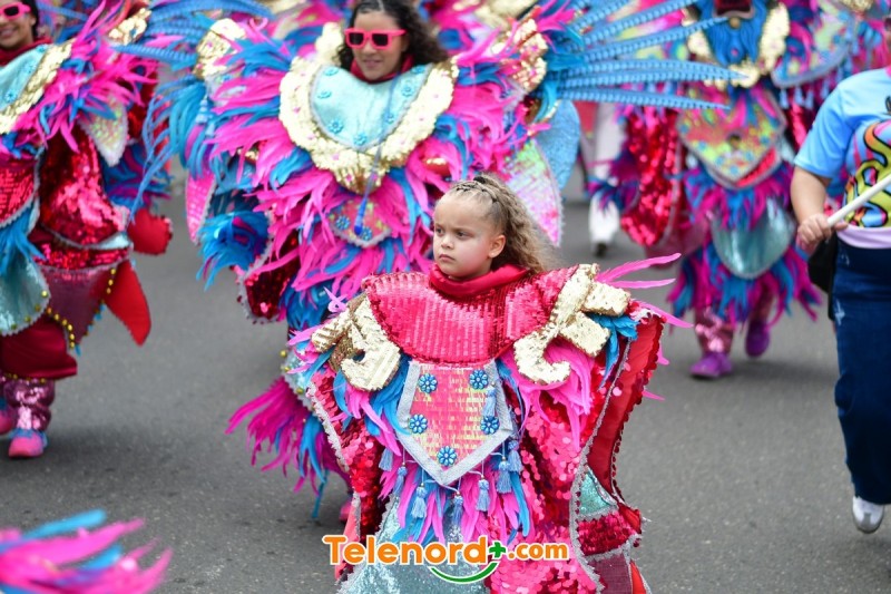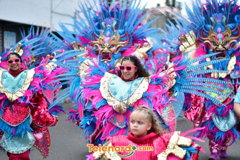 Los grupos carnavalescos desfilaron por última ocasión con sus coloridos y vistosos trajes especiales para esta gran clausura, para el disfrute de los cientos de personas que disfrutaron del carnaval en la Calle el Carmen, en el centro del casco urbano.