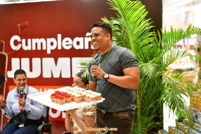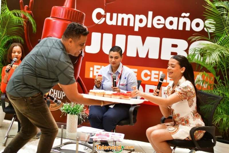 Engels Lizardo, Anny Camilo y Kamila Merejo, junto a Arismendy Lantigua y el equipo completo de Telenord, festejaron este importante aniversario de la cadena de hipermercados con dinámicas y temas relacionados con los cumpleaños y detalles sobre las ofertas especiales de Jumbo.