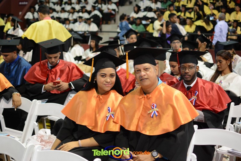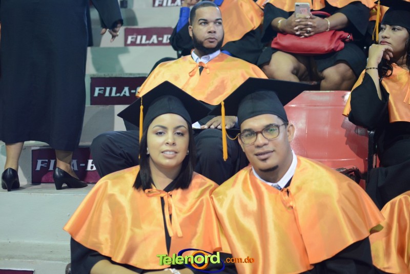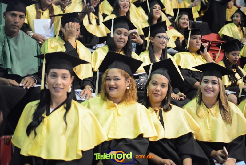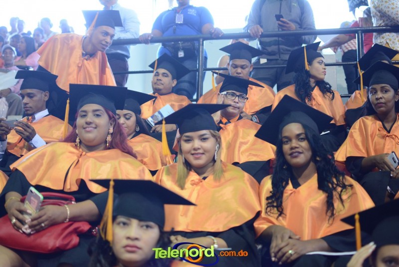 El solemne acto de grado y posgrado inició a las 9:00 de la mañana con el desfile de los graduandos en el área del Pabellón Bajo Techo Mario Ortega del Complejo Deportivo Juan Pablo Duarte, situado en la avenida Manuel Aurelio Tavárez Justo, salida a Nagua.