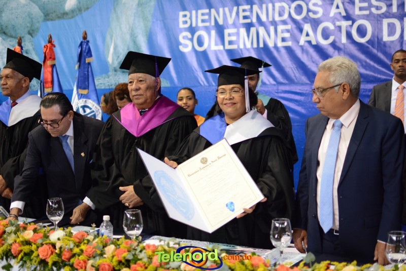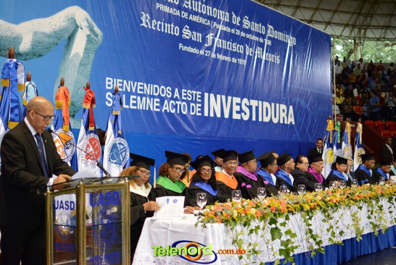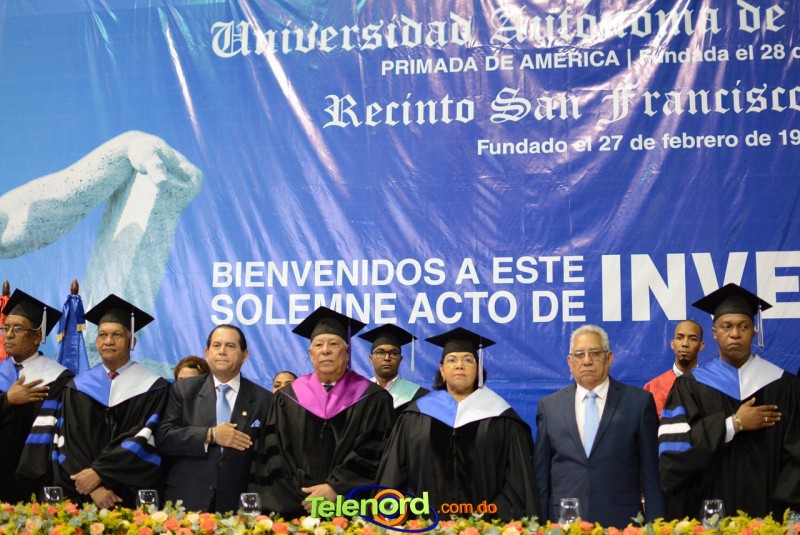 El acto estuvo encabezado por la Dra. Emma Polanco Melo, Rectora, magnifica, el vicerrector de Investigación Postgrado, Mtro. Mauro Canario, los miembros del Consejo Universitario, el Director General del Recinto, Mtro. Miguel Medina Liriano, invitados especiales, así como autoridades civiles y militares de la región, entre otras personalidades.