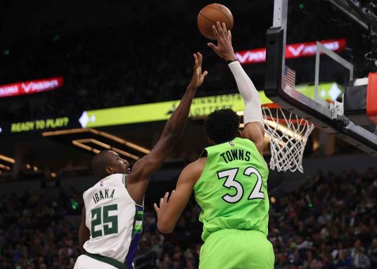 Karl-Anthony Towns sumó 25 puntos y 11 rebotes para que los Timberwolves de Minnesota doblegaran el sábado 138-119 a unos Bucks de Milwaukee carentes de su astro Giannis Antetokounmpo debido a un dolor de rodilla.