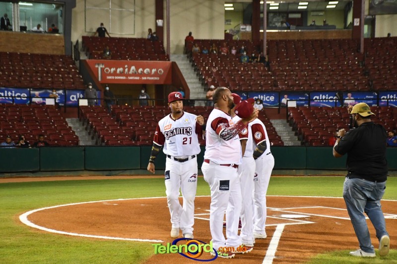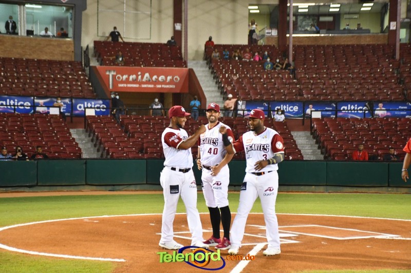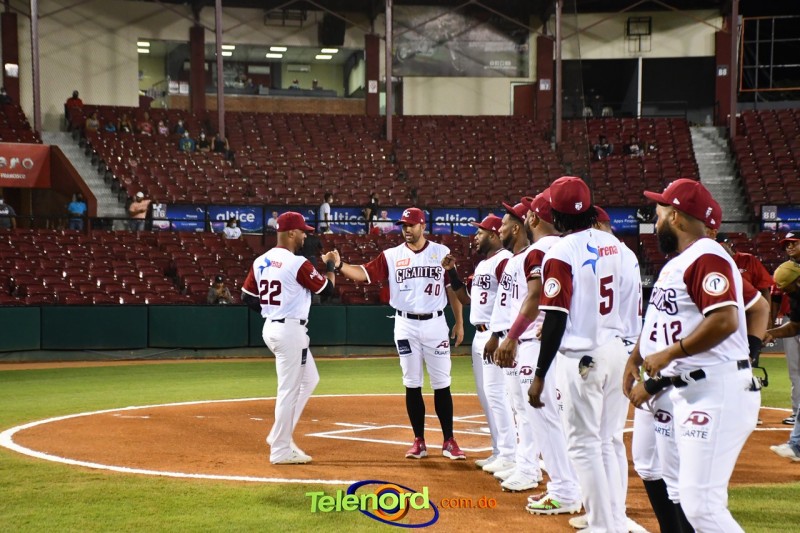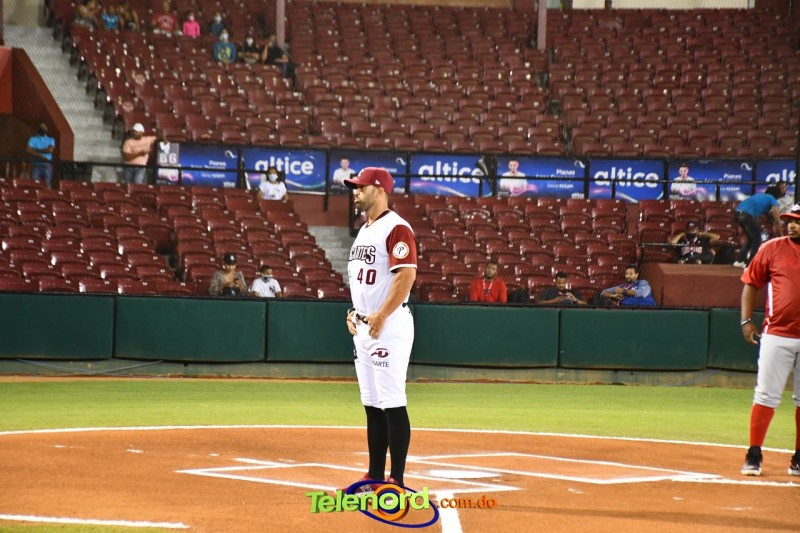 La ceremonia previa al encuentro contó con la presencia de ejecutivos del equipo, personalidades de la localidad, civiles y militares. El alcalde de la provincia, expresidente del equipo y miembro fundador, Siquio Ng de la Rosa, tuvo a su cargo el lanzamiento de la primera bola, acompañado de Alfredo Acebal, vicepresidente operaciones de los Gigantes del Cibao.