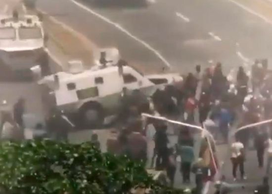 VÍDEO: Una tanqueta atropella a manifestantes cerca de base militar en Caracas