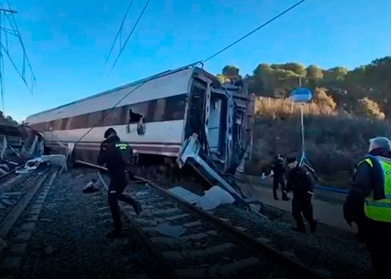 El maquinista de un tren murió y otras 37 personas resultaron heridas, cinco de ellas de gravedad, al chocar este martes contra un muro de contención que cayó a la vía, entre Gelida y Sant Sadurní d'Anoia (Barcelona), a causa de un temporal.