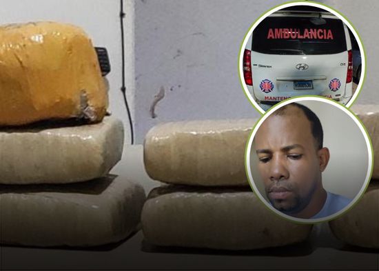 Agentes de la Policía Nacional apresaron a un chofer de una ambulancia al que decomisaron nueve paquetes de marihuana cuando alegadamente transportaba a un paciente.
