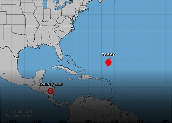 La Oficina Nacional de Meteorología (Onamet) informó que el huracán Tammy fue localizado este martes cerca en la latitud 24.2 norte y longitud 62.3 oeste, a unos 935 kilómetros al sur/sureste de Bermuda (Antillas Menores).