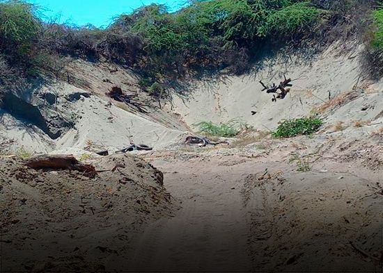 En una desafiante y burda violación a la Ley 64-00, que debe cuidar este sistema ecológico como área protegida, grandes socavones hieren las entrañas de estas milenarias montañas de arena, así como toda su endémica y particular vegetación.