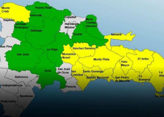 El Centro de Operaciones de Emergencias (COE) mantiene 12 provincias en alerta amarilla y nueve en alerta verde debido a las precipitaciones ocurridas y a las esperadas, como consecuencia de una vaguada y una onda tropical.