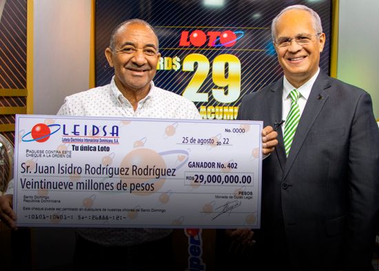 Santo Domimgo, R.D.-La Lotería Electrónica Internacional Dominicana (LEIDSA) informó que un profesor jubilado recibidó el premio del sorteo de la loto del pasado sábado 6 de agosto.