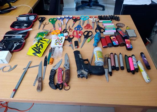 Encuentran pistola, vaper, tijeras, navajas, cuchillos y otros objetos punzantes en liceo de San Juan