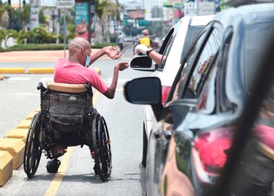 “No hay comida en mi casa, por favor, ayúdenme, no hay enfermos, tengo dos niños”. Mostrando ese mensaje en un cartón, un pedigüeño imploraba ayuda en la avenida Winston Churchill del Distrito Nacional.