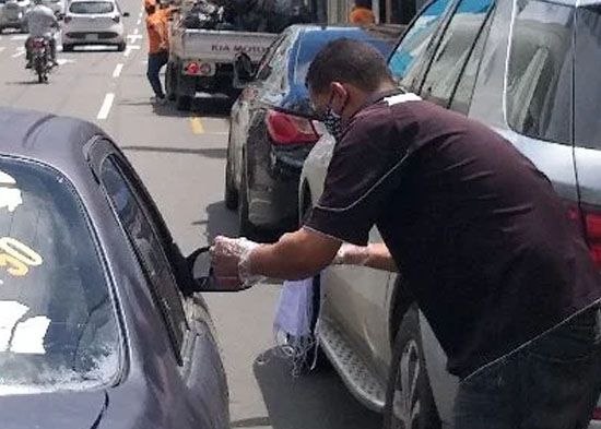 Venden mascarillas artesanales en calles Santiago