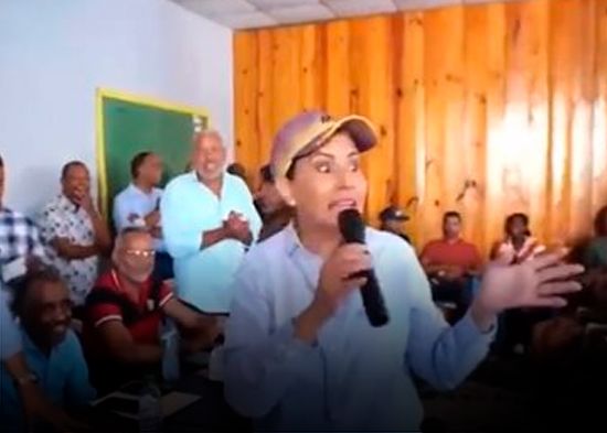 Tras esto, Cedeño reaccionó un poco asombrada y se disculpa con los presentes de una manera amable, pero aprovecha para instar a los presentes a apoyar al PLD.