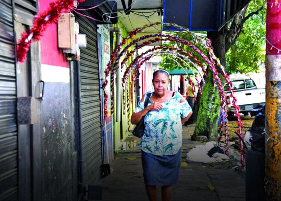 En el Barrio Enriquillo son pocas las casas en que se puede ver alguna decoración navideña, además de la poca gente que hay en los alrededores. Muchos negocios lucen vacíos.
