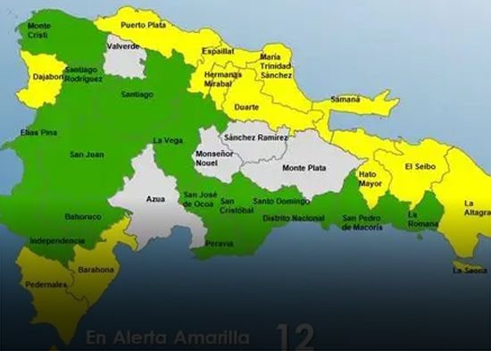 En alerta amarilla están Puerto Plata, María Trinidad Sánchez, Espaillat, Barahona, Hato Mayor, El Seibo, Samaná, Dajabón, Duarte, Hermanas Mirabal, La Altagracia