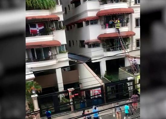 Bomberos rescatan niño salió por verja de balcón en un tercer piso
