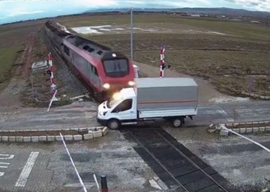 En la ciudad turca de Sulumenli, provincia de Afyonkarahisar, un tren de carga embistió un camión que pretendía cruzar la vía ferroviaria cuando el semáforo estaba en rojo. El camión se llevó por delante las barreras de seguridad y se detuvo en medio de los rieles justo en el momento en el que pasaba el tren, que arrastró al vehículo unos 500 metros. El conductor del camión resultó herido.