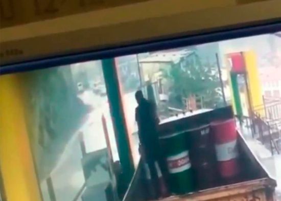 En una pequeña localidad de la república rusa de Daguestán, la cámara de seguridad de una gasolinera captó el momento en que un derrumbe de rocas estuvo a punto de terminar en tragedia.