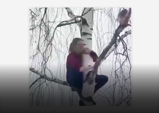 VIDEO: Acude al rescate de una gata y queda también atrapada en lo alto de un árbol