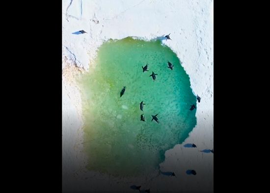 VIDEO: Pingüinos disfrutan de un 'balneario' en medio del hielo antártico