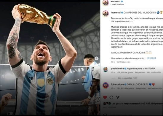 Argentina sigue celebrando el triunfo en el Mundial de Fútbol y es Lionel Messi quien junto a su equipo han protagonizado las fotos que han hecho historia. El capitán argentino acaba de conseguir la foto con más likes en la historia de Instagram con más de 61.5 millones de “me gusta”.