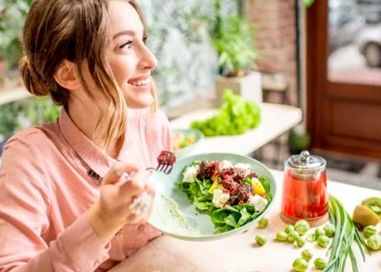 Comer ensalada para una dieta sana.