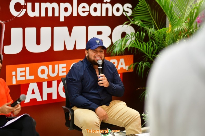 Engels Lizardo, Anny Camilo y Kamila Merejo, junto a Arismendy Lantigua y el equipo completo de Telenord, festejaron este importante aniversario de la cadena de hipermercados con dinámicas y temas relacionados con los cumpleaños y detalles sobre las ofertas especiales de Jumbo.