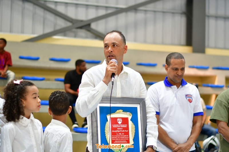 Con mucha distinción le fue entregada una placa a Aneudy Rafael Morel Ovalles por sus grandes aportes al baloncesto y nuestra región.
