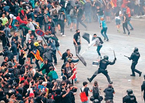 Manifestantes crean caos por sentencia contra 12 separatistas