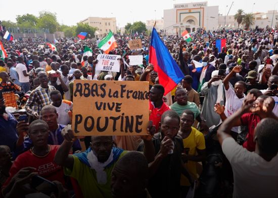Miles de simpatizantes de la junta militar que se apoderó de Níger en un golpe de Estado esta semana marcharon por las calles de la capital ayer domingo denunciando el antiguo poder colonial del país y prendiendo fuego a una puerta de la embajada francesa antes de que el ejército dispersara a la multitud.
