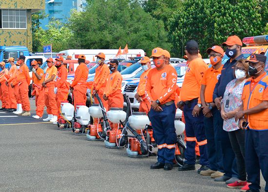 La Defensa Civil y el Ministerio de Salud Pública intervinieron 15 sectores de Santiago con gran incidencia en casos positivos de COVID- 19, con un amplio operativo de desinfección de espacios públicos, entrega de mascarillas y mensajes de orientación a la población.