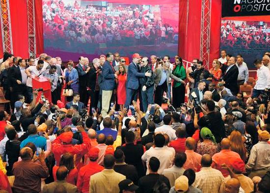 El expresidente Leonel Fernández anunció la conformación de un frente opositor integrado por partidos políticos, fuerzas sociales y populares, al ser proclamado este sábado candidato presidencial por tres partidos.