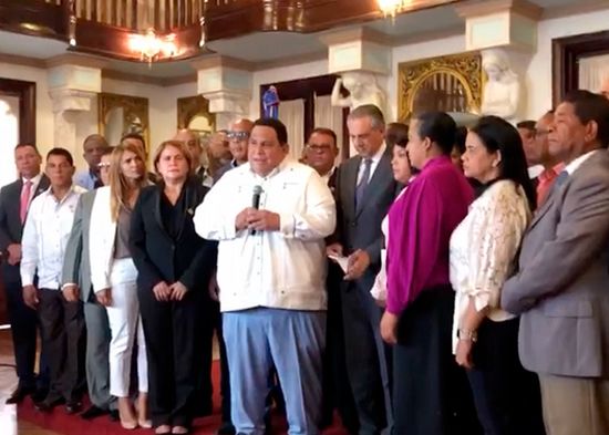 Un grupo de 261 alcaldes y directores de distritos municipales entregaron en el Palacio Nacional un documento en el que piden la habilitación del presidente Danilo Medina y la unificación de las elecciones, para los cuales se requiere la modificación de la Constitución de la República.