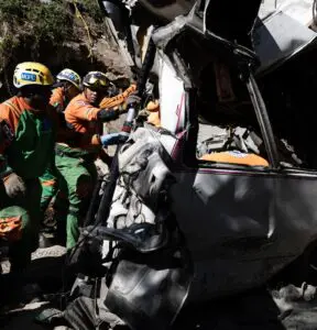 Santo Domingo .-A pleno sol, pero en el ambiente de una cañana, personal de los organismos de socorro se dedicaban en cuerpo y alma a los esfuerzos por rescatar víctimas atrapadas en el autobús golpeado y empujado a un barranco por el que cayó debajo de una patana cargada de cemento en Quita Sueño, de Haina.