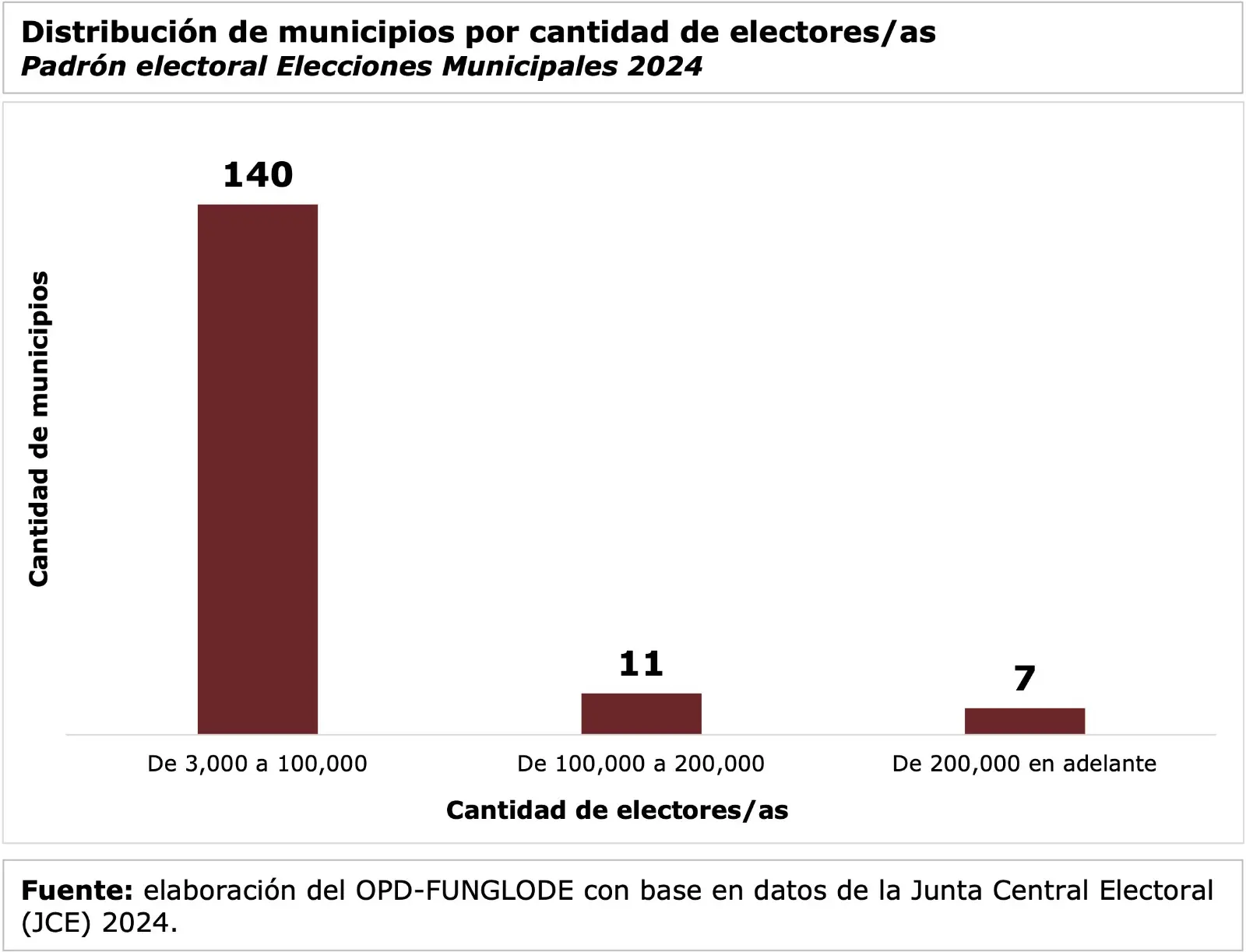 El estudio destaca, además, que en este proceso electoral municipal se elegirán 2,292 cargos entre alcaldes/as, regidores/as, directores/as, vocales y sus correspondientes suplentes para 158 municipios y 235 distritos municipales, es decir, 393 demarcaciones.