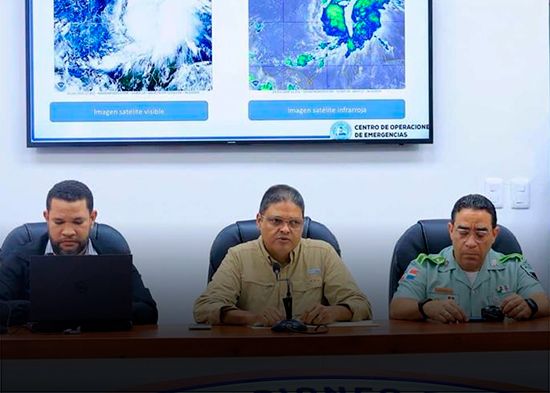"El sistema está más cerca de Haití, y eso significa más lluvias para nuestro territorio, porque las bandas activas están en el cuadrante este del fenómeno", explicó Méndez al interpretar los reportes técnicos presentados por el predictor Wagner Rivera del Indomet.