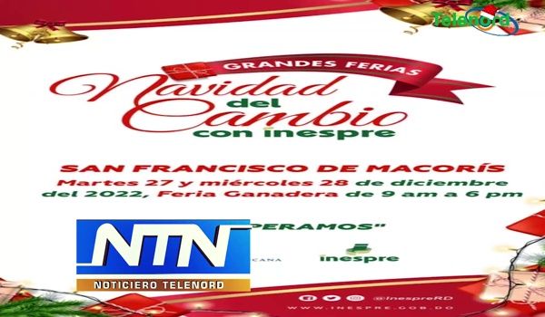 Anuncia Feria “Navidad del Cambio con INESPRE” día 27 y 28 de diciembre en SFM Escrito por noticiero telenord el 26 Diciembre 2022. Publicado en Noticiero Telenord.
